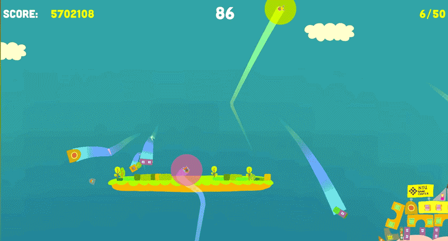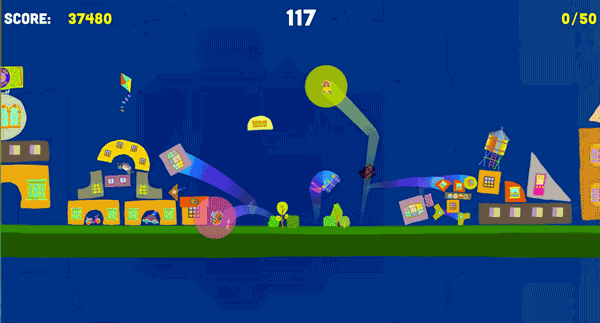 Slam City Oracles is a rambunctious, riot grrrl, Katamari-meets-Grand Theft Auto physics game, in which you and a friend slam onto the world around you to cause as much chaos as possible in two minutes. Your score is based on the number of objects you send flying at a given time. The harder you slam something, the more likely it is to go spinning and flying away–and that velocity is directly tied to the score it gives you. So slam as much stuff as hard as you can!